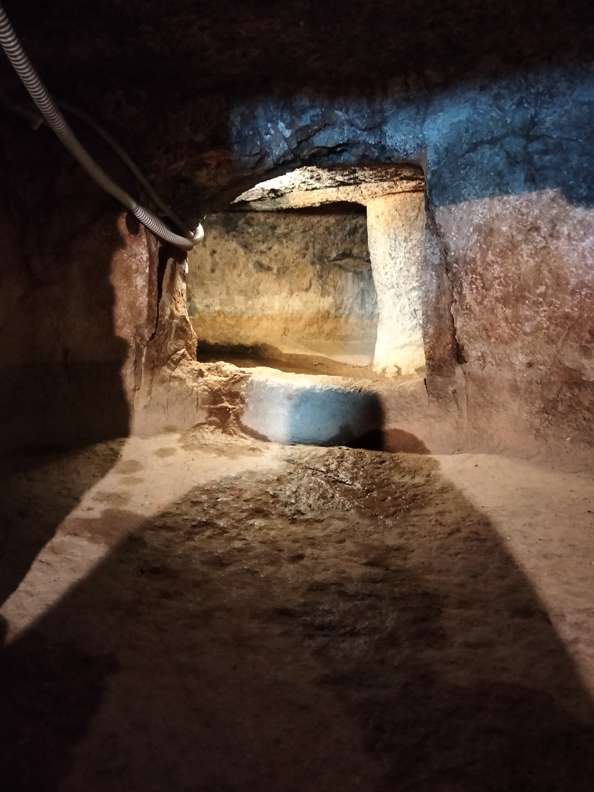 Singolare non solo perché inclusa all'interno di una chiesa ma anche perché parte integrante della struttura che non a caso viene definita "santuario". Un santuario è il corrispondente di una reliquia per quanto concerne i luoghi; la tradizione popolare riporta infatti la narrazione secondo cui all'interno della spelonca fosse vissuto il santo. Nulla di improbabile, anzi. Tipicamente queste tombe sono state reimpiegate nel tempo per un'infinità di scopi, siano essi pratici che sacrali. Viene tuttavia da domandarsi perché fra tutte proprio questa cavità venne designata dalla leggenda come luogo di residenza del santo.